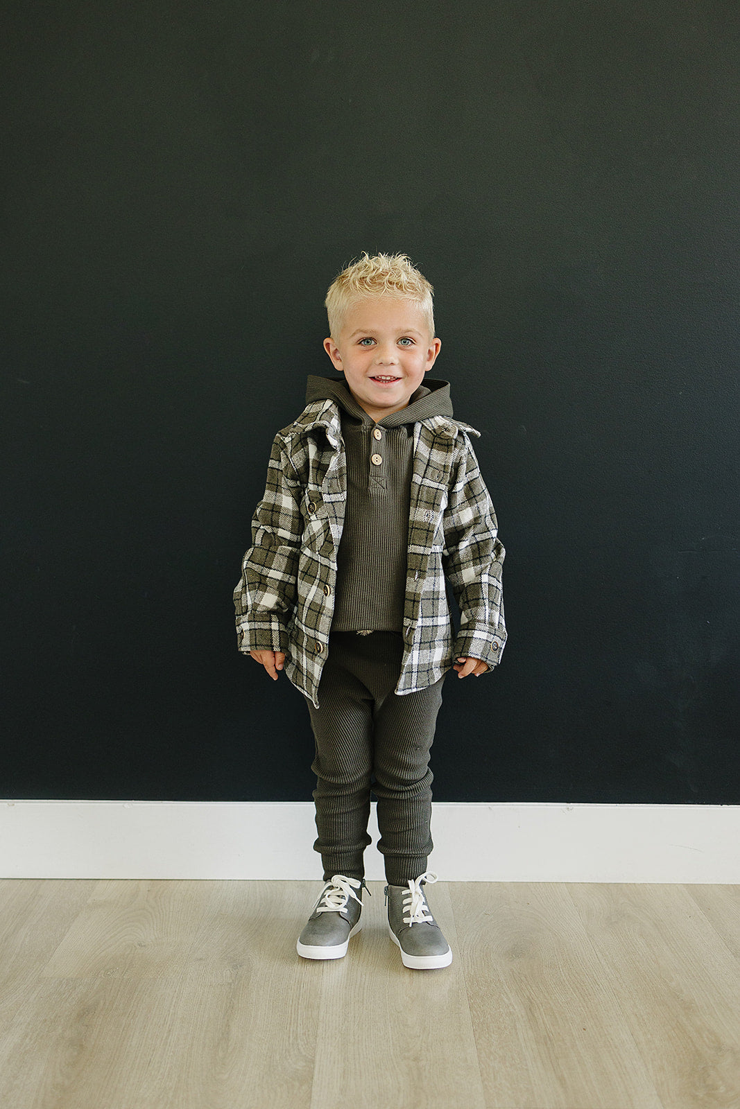 The Charcoal Flannel Shacket by Mebie Baby is the perfect combination of a shirt and a jacket, providing warmth and style for your little one. Made from soft and comfortable flannel fabric, this shacket is ideal for layering during cooler days. The charcoal color adds a trendy touch to your child's outfit, while the button-up front allows for easy dressing. Whether worn indoors or outdoors, this versatile piece will keep your baby or toddler looking adorable and feeling snug.