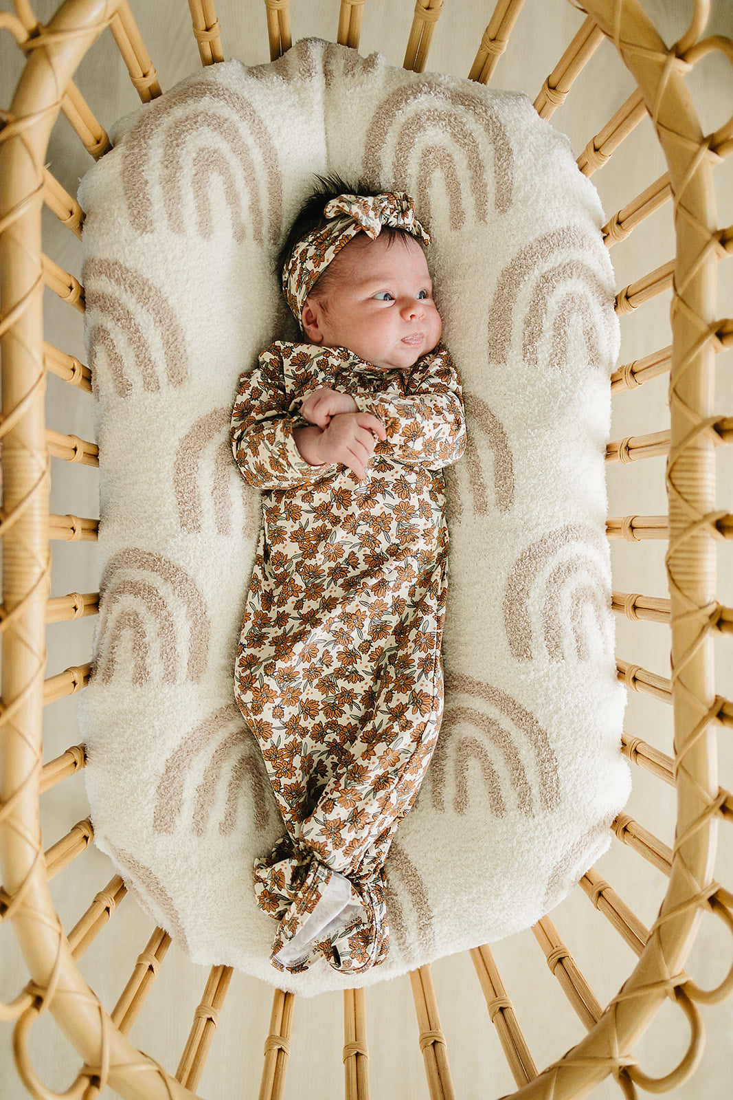 Wrap your little one in the utmost comfort with our Cream Magnolia Bamboo Knot Gown. Crafted from luxurious Bamboo Rayon, this gown is designed to keep your baby cozy and content. The size 0-3 gown features fold-over hand and two snaps for effortless on and off. The bottom can be easily tied and untied in a knot, allowing for quick and hassle-free diaper changes, making it a must-have for newborns. With a range of gender-neutral designs and colors, this gown is perfect for any baby. Match it with our stretch swaddles, head wraps, and hats for a coordinated and stylish look. Dressing your baby has never been easier or more comfortable than with our Taupe Checkered Bamboo Knot Gown.