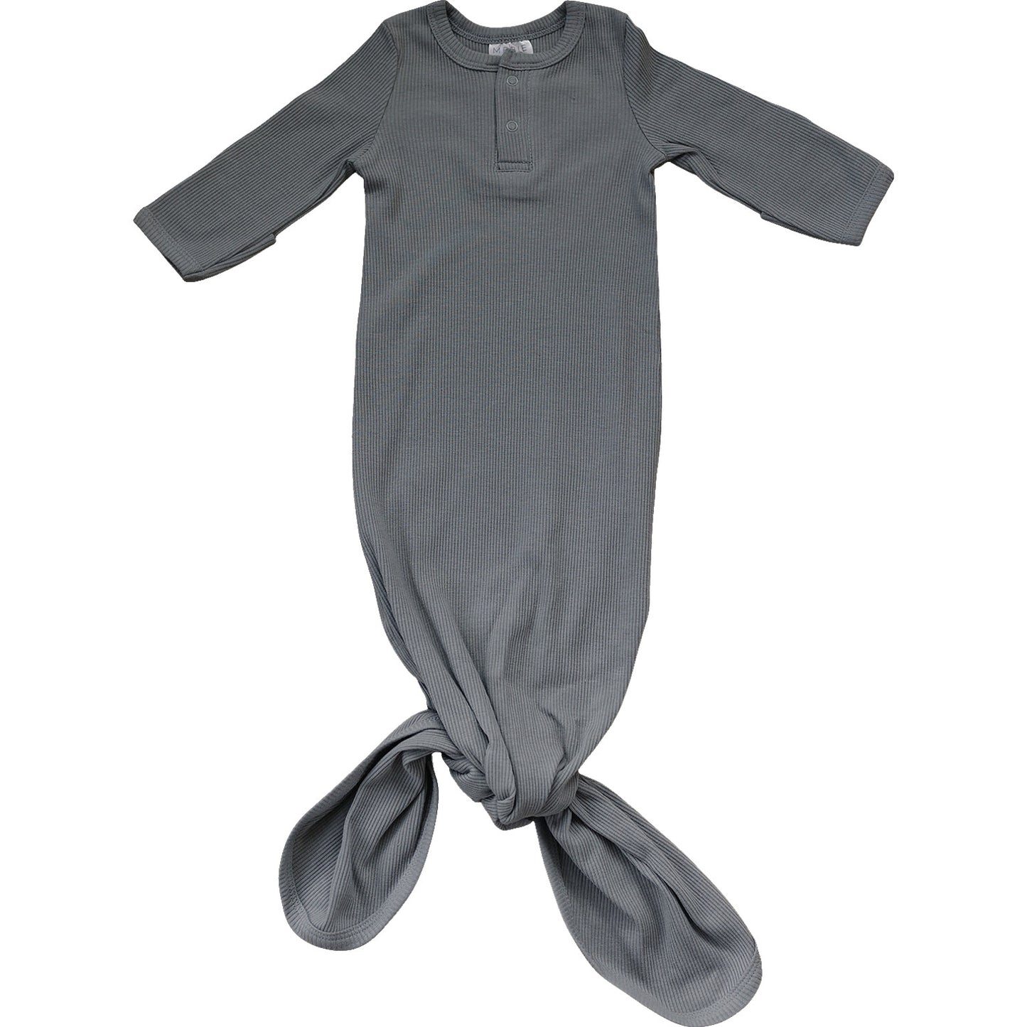 These gowns are size 0-3. The Mebie Baby Organic Knot Gown is a must-have for newborns, offering both comfort and convenience. Crafted from incredibly soft organic cotton, this gown is designed to keep your little one cozy. With a range of gender-neutral designs and colors, it is suitable for any baby. The gown features practical elements such as fold-over hands, two snaps for easy on and off, and shoulder flaps for effortless dressing. The bottom can be conveniently tied and untied in a knot, allowing for quick and hassle-free diaper changes. Simplifying the process of dressing your baby, this gown combines functionality with style, making it an essential addition to your baby's wardrobe.