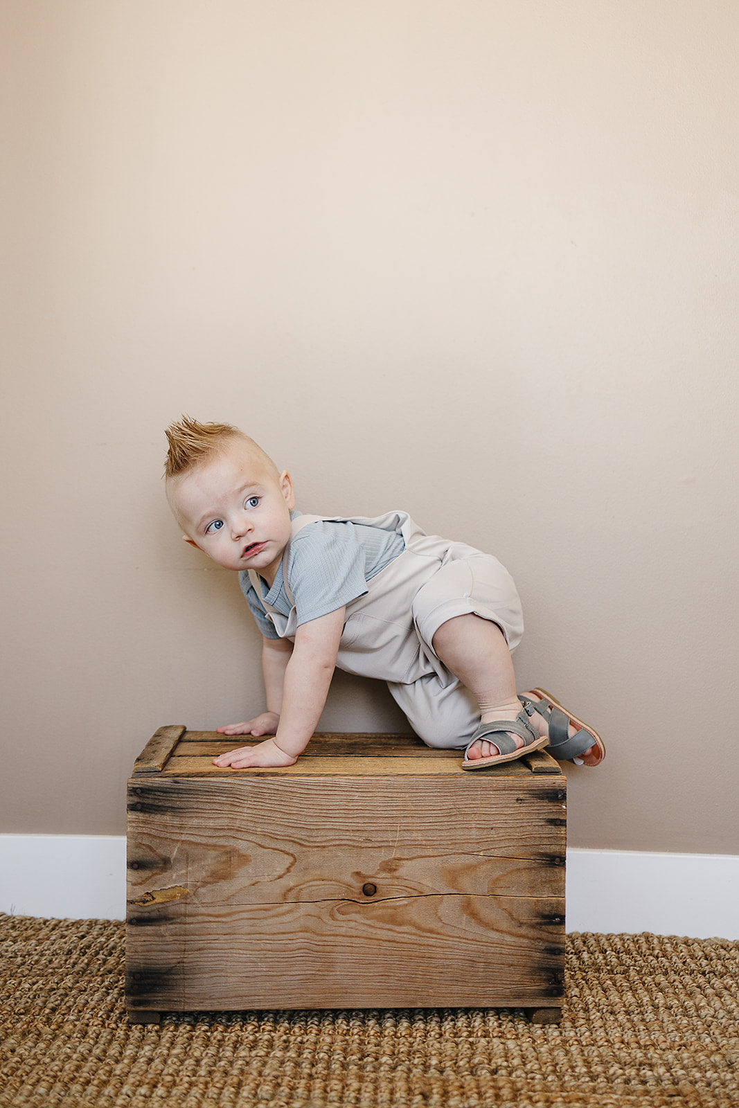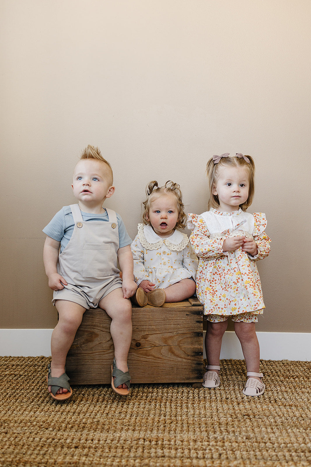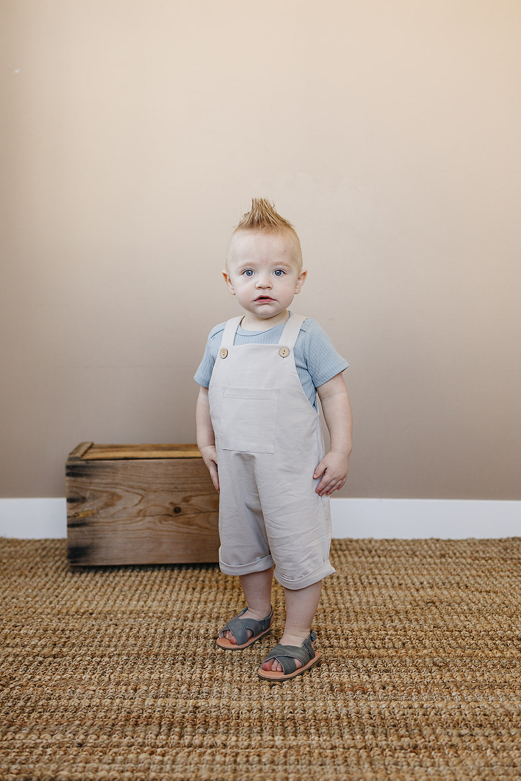 These are our Grey Short overalls. They are perfect for family pictures, a night out, or a play date!
