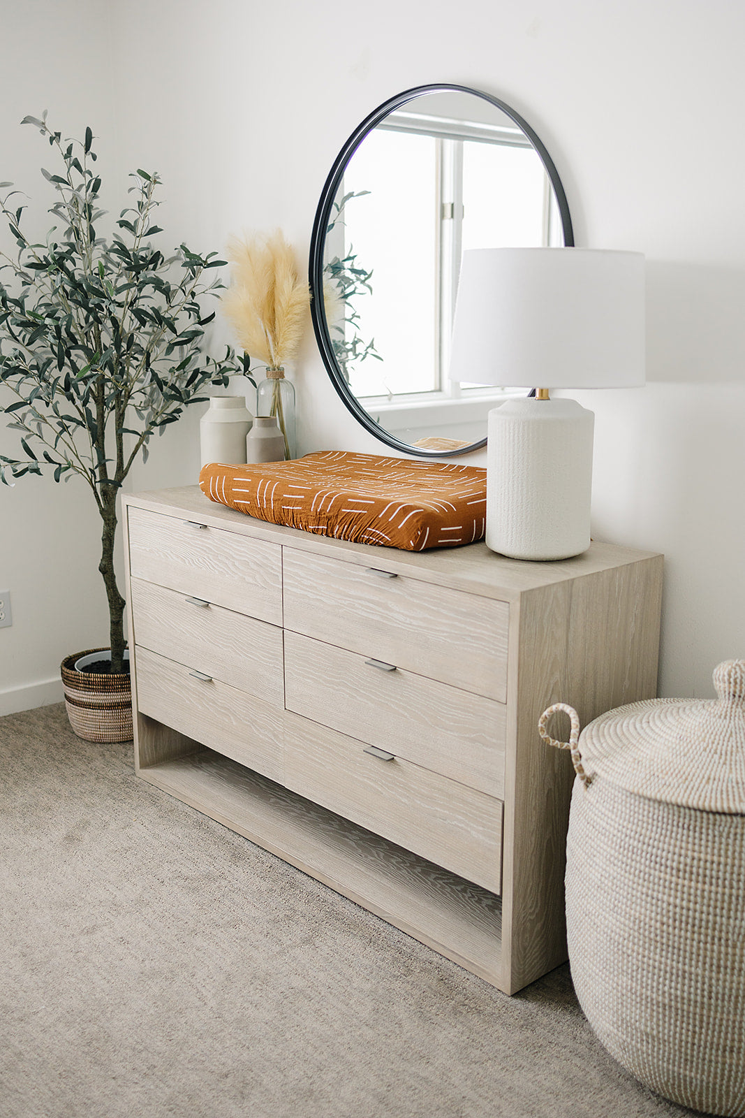 Transform your baby's changing station with our Mustard Mudcloth Changing Pad Cover. Made with our exclusive designed fabric, this cover is not only stylish but also soft, breathable, and easy to wash. The elasticized edges make it a breeze to put on and take off standard changing pads. Add a touch of modern elegance to your nursery with this must-have accessory.