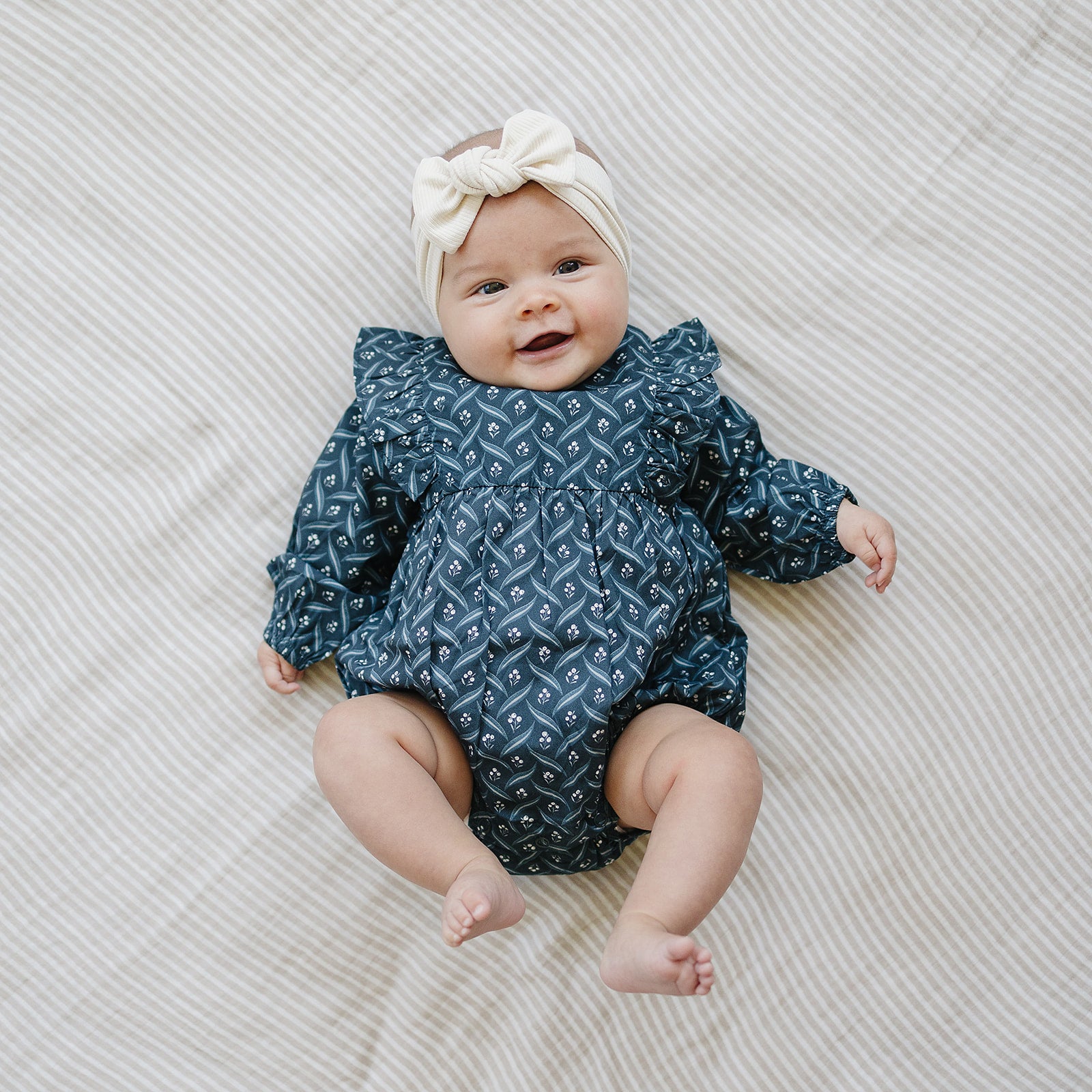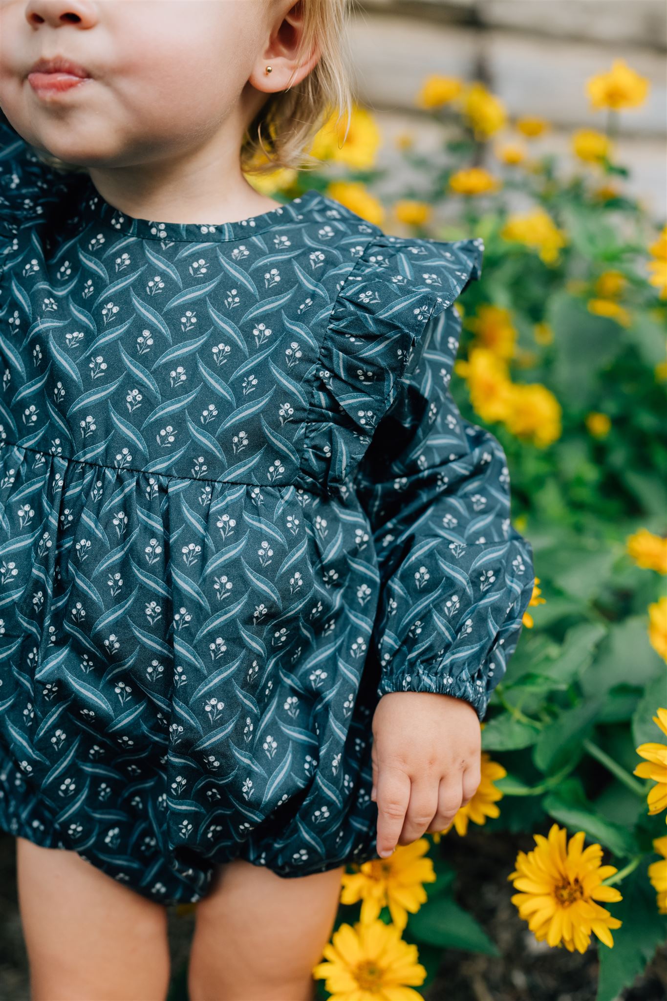 Ideal for family pictures, playdates, family gatherings, or everyday adventures, our Navy Berry Long Sleeve Ruffle Bubble Romper combines style and comfort effortlessly. Pair it with cozy tights or cute socks for a complete look. Shop now and add this charming romper to your baby's wardrobe!
