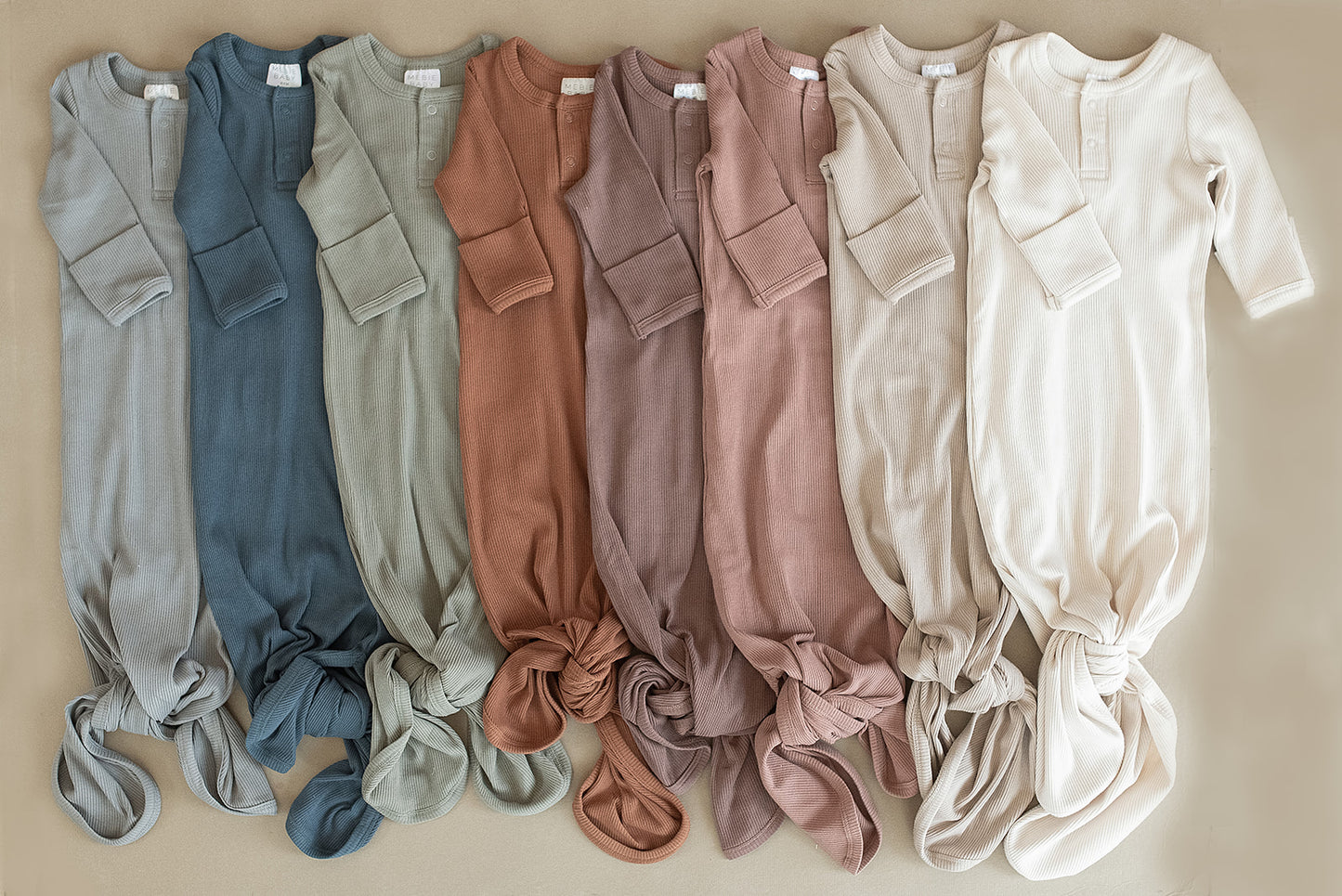 These gowns are size 0-3. The Mebie Baby Organic Knot Gown is a must-have for newborns, offering both comfort and convenience. Crafted from incredibly soft organic cotton, this gown is designed to keep your little one cozy. With a range of gender-neutral designs and colors, it is suitable for any baby. The gown features practical elements such as fold-over hands, two snaps for easy on and off, and shoulder flaps for effortless dressing. The bottom can be conveniently tied and untied in a knot, allowing for quick and hassle-free diaper changes. Simplifying the process of dressing your baby, this gown combines functionality with style, making it an essential addition to your baby's wardrobe.