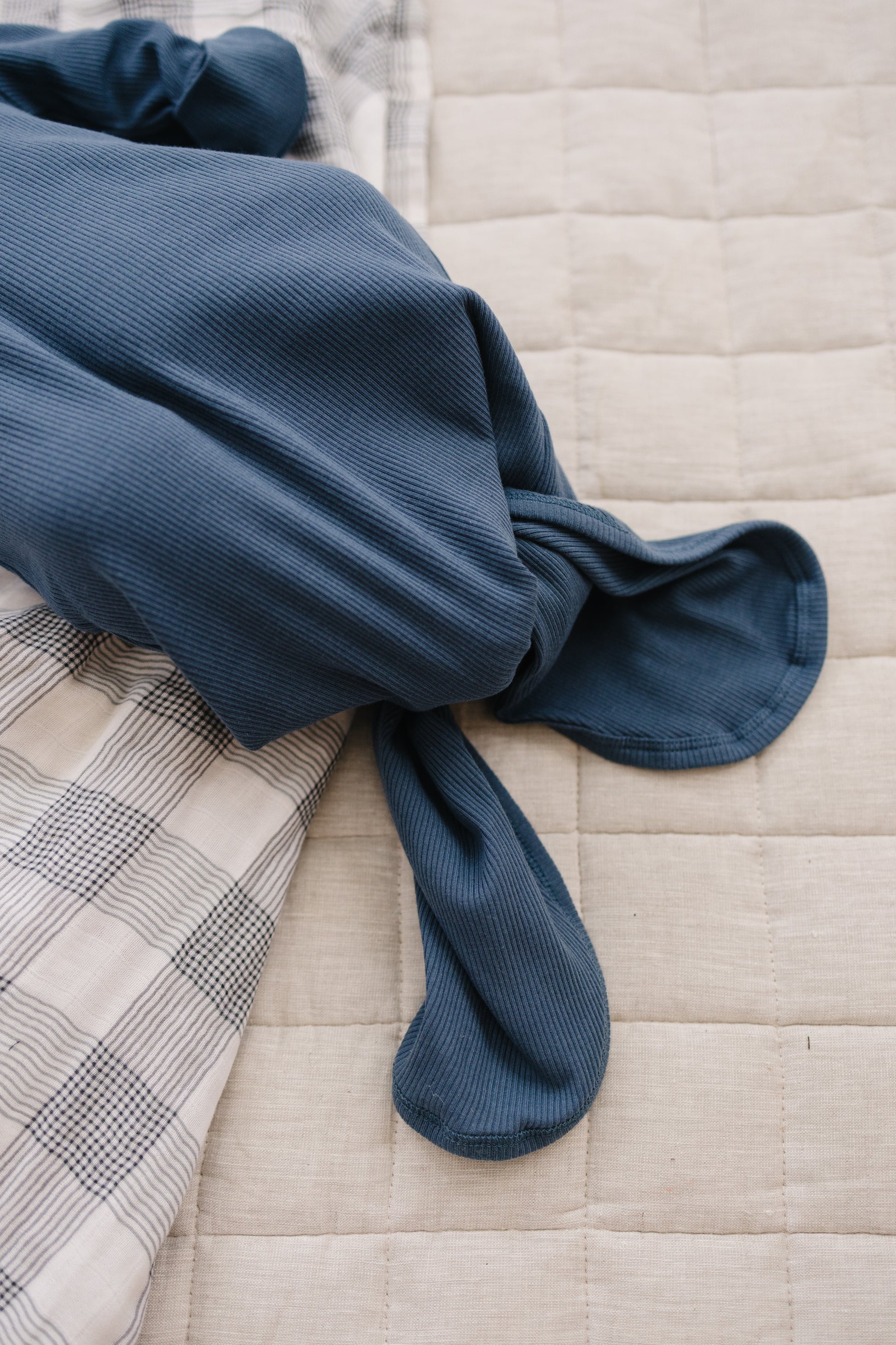 Navy Organic Cotton Ribbed Knot Gown